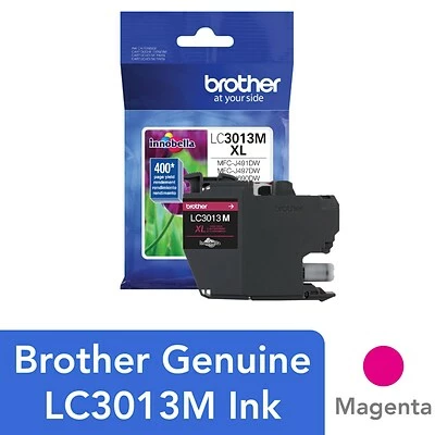 Brother Genuine LC3013M High-yield Magenta Ink Cartridges deliver consistent print quality with a 400-page yield* and work seamlessly with your Brother inkjet printer to produce rich, vivid color prints that last over time. For environmentally responsible cartridge disposal information visit www.brother-usa.com/environment. Use Brother Genuine LC3013M with Brother Work Smart Series all-in-one printers: MFC-J491DW, MFC-J497DW, MFC-J690DW, MFC-J895DW.