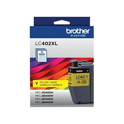 Brother genuine ink cartridges are designed to provide users with a reliable and consistent performance. This Brother genuine LC402 yellow ink cartridge provides sharp, clear printing and superior inkjet print quality you can consistently rely on for up to 1500 pages.