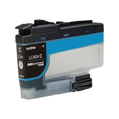 Trust Brother Genuine ink for superior inkjet print quality, page yields and performance you can consistently rely on. Brother Genuine LC404C Cyan INKvestment Tank Ink Cartridges deliver consistent, professional print quality and ultra convenience you can count on for up to 750 pages.* Brother Genuine INKvestment Tank ink cartridges offer the ultimate in convenience. The easy-to-use, front-loading plug-in INKvestment Tank ink cartridges hold more ink than traditional cartridges to continually supply ink to the internal tank, so you get more pages without needing to refill. When refilling is needed, simply take out the empty cartridge, plug-in a replacement and get back to printing with no waiting and no mess.