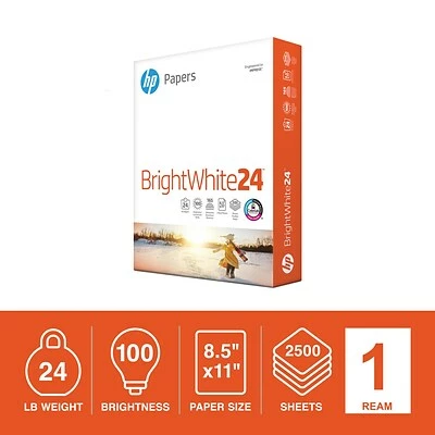 Give charts, graphs, images and text a bold appearance with this HP BrightWhite24 inkjet paper. The smooth surface includes additives to prevent smears and smudges, and the acid-free construction keeps every page looking like new for longer. With 500 sheets in a ream, this HP BrightWhite24 inkjet paper offers an ideal solution for desktop printers or home office use.
