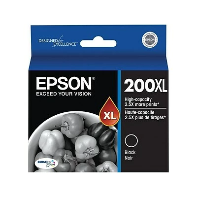 Install this high capacity black ink cartridge in compatible printers for crisp, smudge-free results on paperwork and photos. The cartridge works with select Epson printers, making it simple to replace your empty ink. This Epson 200XL high capacity ink cartridge delivers an ideal solution for high-volume printing needs.