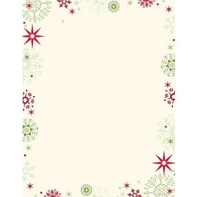 Beautiful snowflakes adorn the border of this red and green flakes letterhead. The empty white space in the center leaves plenty of room for your message. You can write a letter with seasonal news or type out an invitation to the winter event you are hosting.