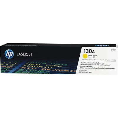 Get vibrant photos and other colored prints with this yellow toner cartridge. It prints up to 1,000 pages, offering a strong choice for home offices or small businesses, and the yellow color provides bright ?images and text?. This HP 130A toner cartridge installs easily into select HP printers, and it’s sold individually, letting you purchase the exact quantity needed.
