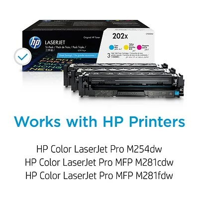 HP 202X Cyan/Magenta/Yellow High Yield Toner Cartridge, 3/Pack (CF500XM) is compatible with the following HP printers: