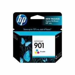 Print forms, reports and other documents with this tri-color ink cartridges. A yield of up to 360 pages easily handles day-to-day home, classroom or office printing needs. This ? HP 901 cartridge works with select HP OfficeJet printers for high-quality results and contains magenta, cyan and yellow ink, producing rich, vibrant documents.