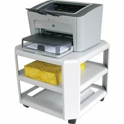 Mead-Hatcher Mobile Printer Stands Martin Yale Master Mead-Hatcher 2-Shelf Metal Mobile Printer Stand With Dual Wheel, White (MAT24060)