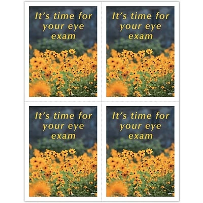 Attention-getting postcard captures your patients attention. The back of the postcard is blank so you can add a personalized message, using your own Laser Printer. Uncoated stock, perforated sheets. Four cards to an 8-1/2″ x 11″ sheet. 100 cards. Detached size: 4-1/4″ x 5-1/2″.