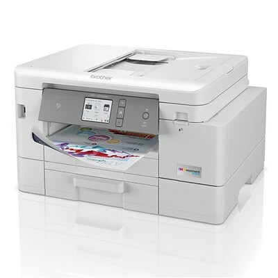 Print, copy, scan, and fax functionality, a generous 2.7″ touchscreen display, and two adjustable paper trays for up to a 400-page total capacity help make the Brother MFC-J4535DW all-in-one color inkjet printer the ultimate INKvestment Tank printer for your home, home office, schoolwork, or small business. Additional paper-handling options include an up to 20-sheet automatic document feeder for fast copying and scanning along with a bypass tray to handle a variety of media. The MFC-J4535DW also offers versatile connection options with NFC touch-to-print, built-in wireless, Wi-Fi Direct, Ethernet, or connect it locally to a single computer via USB interface. The MFC-J4535DW is supported by the Brother Mobile Connect app providing a convenient user interface that enables printing, scanning, copying, and device management from your smartphone or tablet. The MFC-J4535DW features fast print and scan speeds, along with the ability to wirelessly print, copy, and scan, along with duplex printing and enough ink for up to one year of printing with just the ink included in-box.