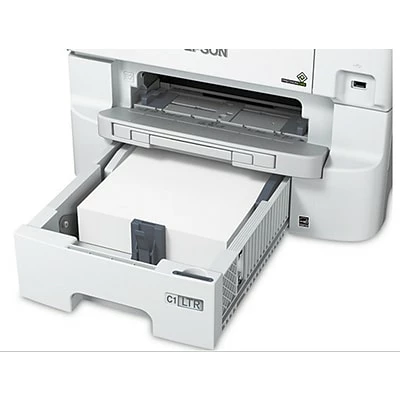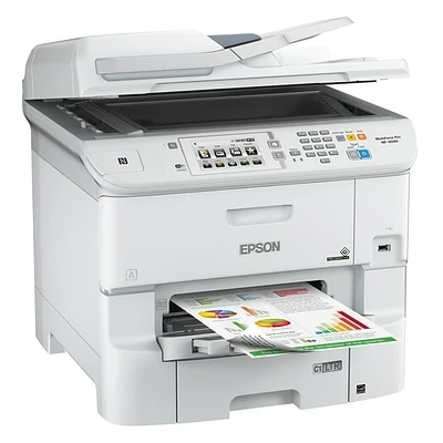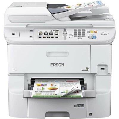 The WorkForce Pro WF-6590 letter/legal-size multifunction printer, powered by PrecisionCore®, saves up to 50 percent on printing costs vs. color lasers. Minimize downtime with Epson’s highest-yield cartridges, which print up to 7000 black/color pages before replacement, and a paper capacity up to 1580 sheets. Epson’s fastest office multifunction printer, the WF-6590 delivers pro-quality documents as fast as 24 ISO ppm (black/color). Fast auto-duplex printing, scanning, copying and faxing saves time and improves workflow. IT tools and security features make network integration seamless for shared printing. And, it’s enabled with remote data collection compatible with leading third-party MPS software solutions.