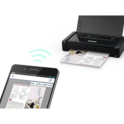 Enjoy fast, effortless printing wherever business takes you with the WorkForce WF-110 wireless mobile printer. Featuring a sleek, ultralight design, this compact mobile printer can be easily transported in bags and briefcases for worry-free printing on the go. This powerful, portable printing solution is fully rechargeable via USB or an AC adapter and can provide even greater print volume when paired with the optional external accessory battery. Plus, with built-in wireless connectivity and Wi-Fi Direct, the WF-110 lets you quickly print presentations, invoices, contracts, and more from the convenience of your iPad, iPhone, tablet, smartphone, or laptop.