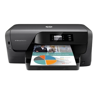 Give charts, reports, and forms a professional look with this color inkjet printer. The pigment-based ink system brings vibrant color to images and text, and print speeds of up to 22 pages per minute for monochrome documents mean shorter waits for jobs to complete. This printer comes with built-in Wi-Fi and wired Ethernet, so you can enjoy a dependable connection whether working from home or the office. Use the Hi-Speed USB host to print PowerPoint, Word or PDF documents from a flash drive, or use the mobile connectivity to send tasks directly from a smartphone or tablet. A 2-inch display and intuitive keypad make it easy to navigate through all available functions. Featuring a host of security management options, including a control panel lock and password protection, this HP OfficeJet Pro inkjet printer helps keep proprietary information safe.