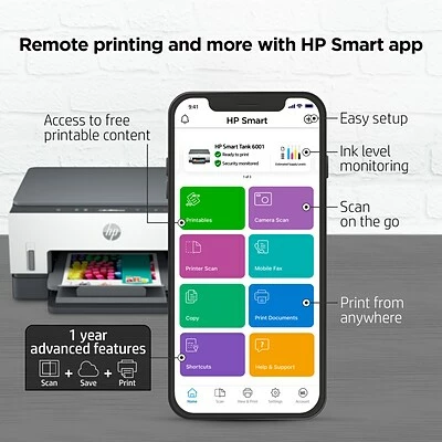 HP SMART APP – Print, scan and copy from your phone—whenever, wherever. Includes 1 year of additional advanced features.
